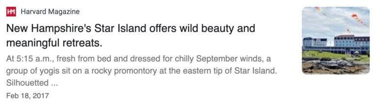 In that time we have garnered feature-length coverage on local and regional television, radio, and multi-page spreads in travel and lifestyle magazines, in addition to countless articles in local publications. We revamped most of the organization’s marketing collateral and provided input for a new website, and coordinated numerous press events related to Star Island’s centennial, energy and sustainability initiatives, and an annual sailing regatta. We have also helped increase participation in the conferences held on the island and the number of visitors who ferry out for the day. In 2018, CrossCurrent Communications produced a promotional video for Star Island that has garnered more than 70 thousand views on Facebook and YouTube. We continue to raise awareness for this amazing place! Check out StarIsland.org